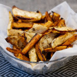 När ugnen är varm kan du ställa in plåten i mitten och tillaga tills sötpotatisens smala kant blivit bränd, det är först då den karamelliserat och smakerna kommit fram.